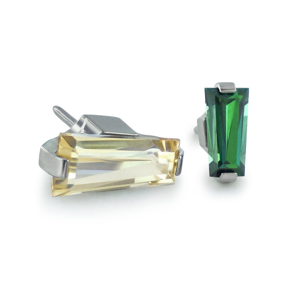 Back and Front of Threadless Titanium Princess Cut Gem Ends