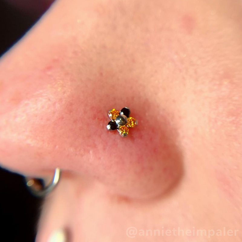 Get in the spooky spirit with our limited edition flower ends. Made from implant-grade titanium, these flower ends feature Orange and Black Czs.
