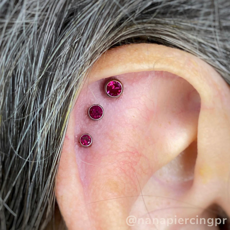 NeoMetal's first threadless gem setting, released in 1997. Popular in all piercings, from ear lobes to high nostrils, these quality crimp-set titanium gem ends are a statement of quality as timeless as NeoMetal itself.