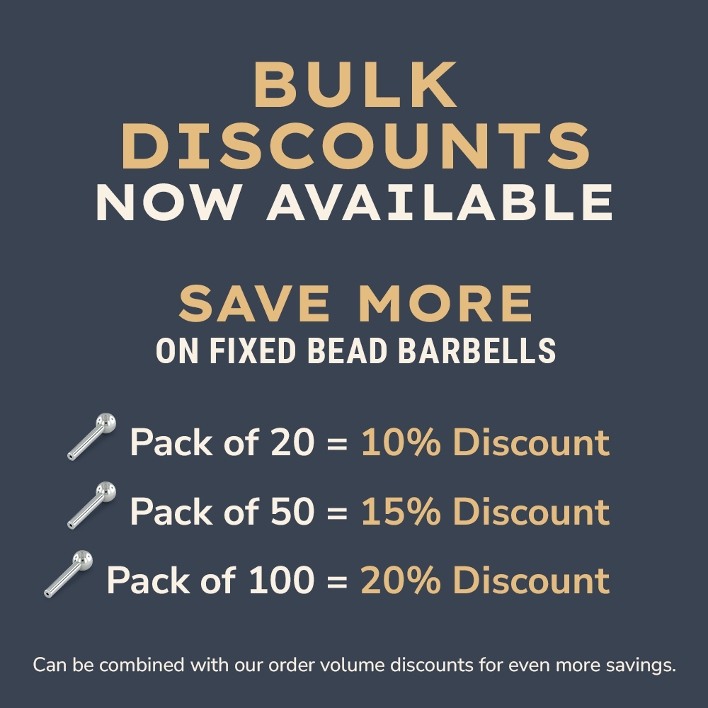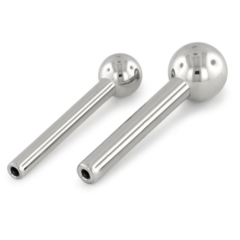 These barbell shafts are made from implant grade titanium and can be used with all of our threadless ends. The 18ga barbell has an attached 2.5mm ball. The 16ga barbell has an attached 3mm ball.